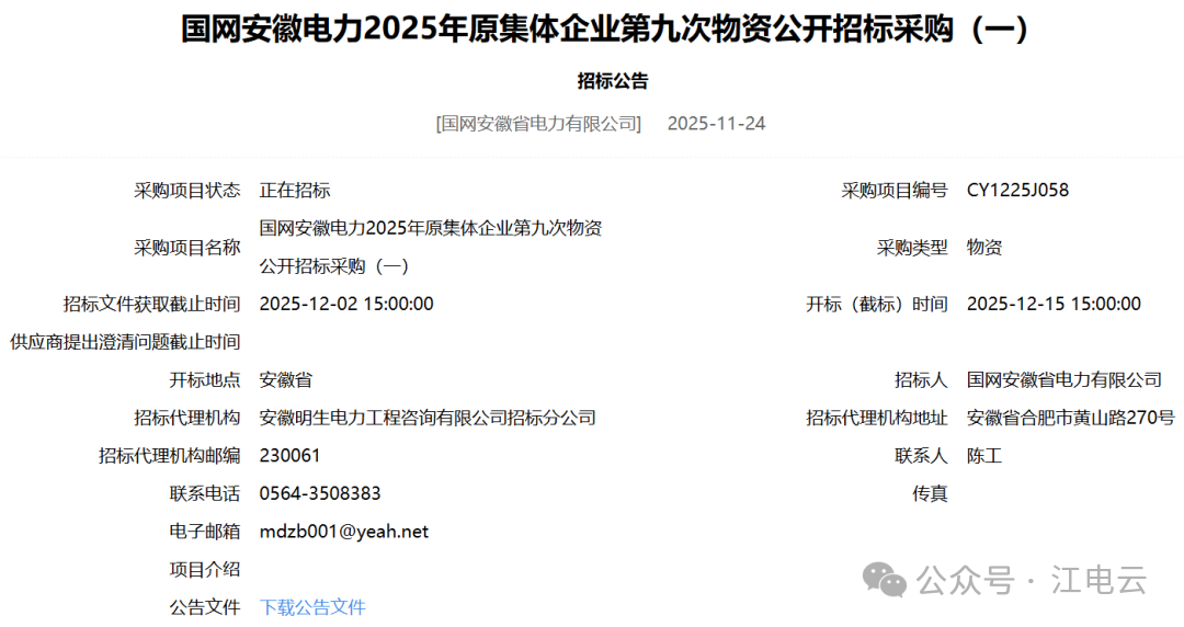 >国网安徽电力>2025>年原集体企业第九次物资公开招标采购(四)
