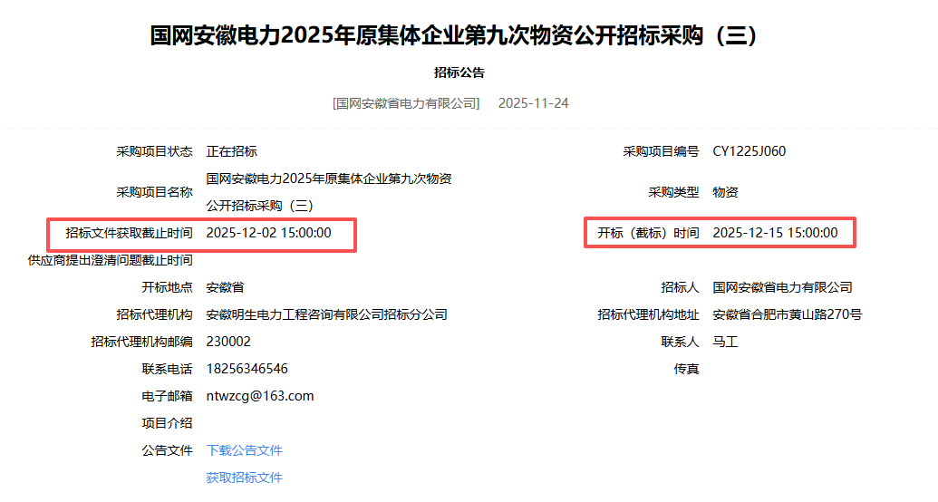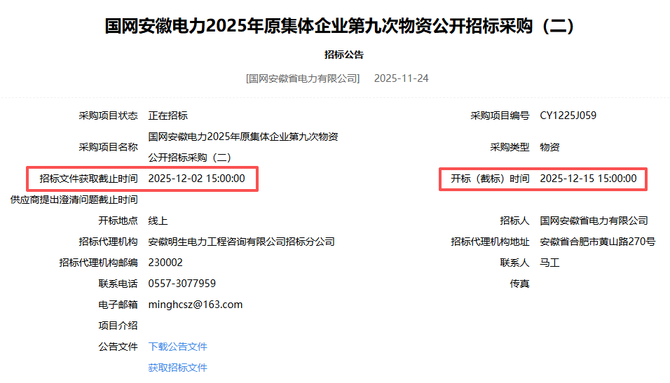 >国网安徽电力>2025>年原集体企业第九次物资公开招标采购(二)