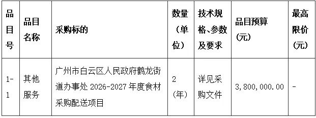 项目名称:广州市白云区人民政府鹤龙街道办事处2026-2027年度食材采购配送项目